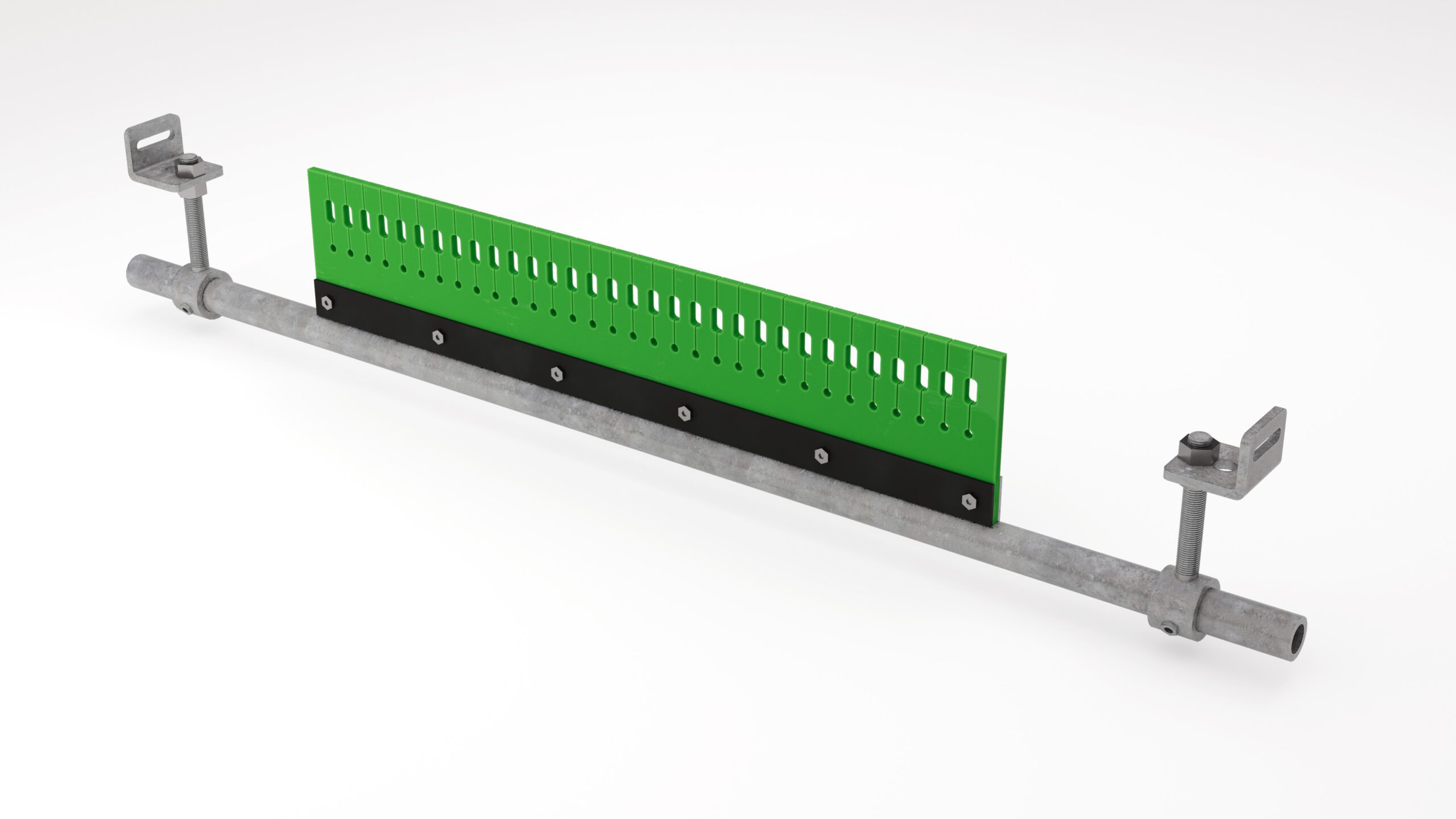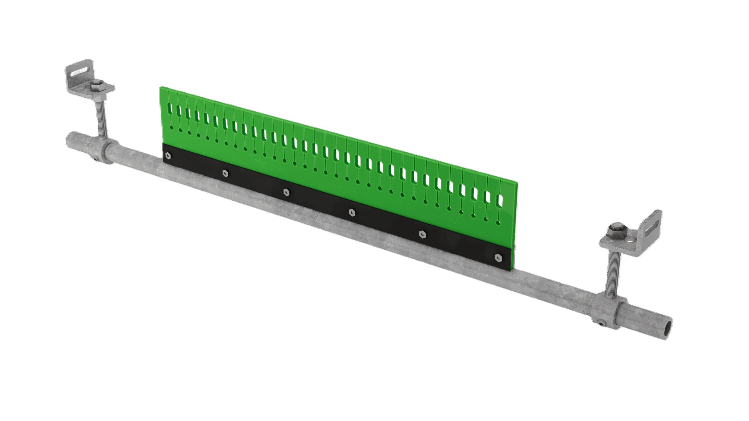 Chevron Belt Cleaner is engineered specifically for chevron-profile conveyor belts. Its flexible PU finger blades conform to the raised chevron pattern to remove sticky or damp material. Designed for silent running, minimal maintenance, and easy installation in tight or retrofit spaces. easy-to-fit replacement parts available from stock.